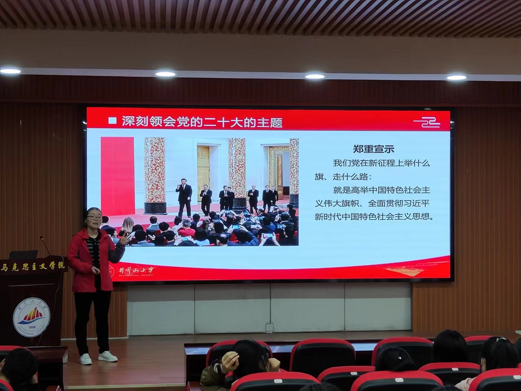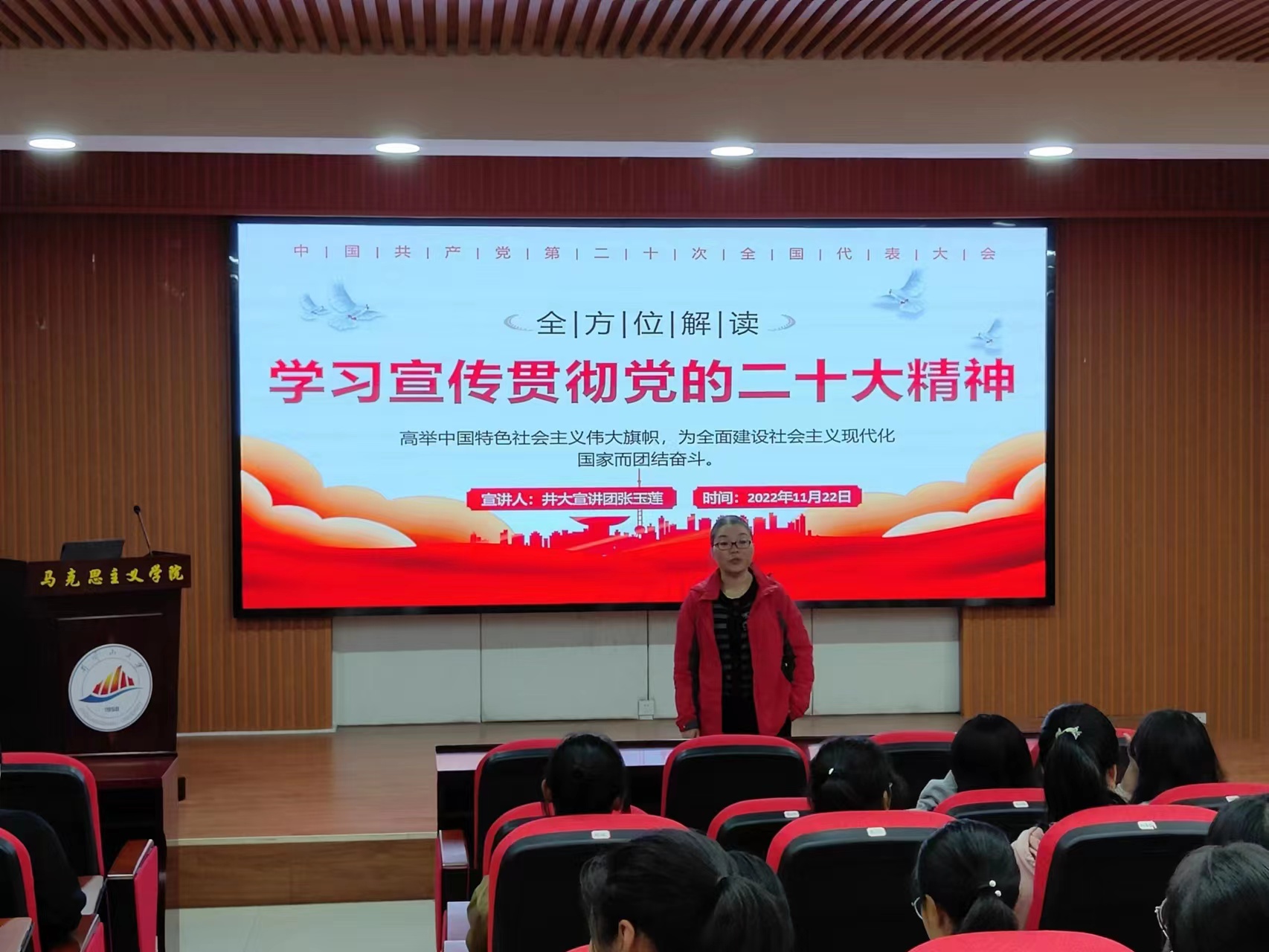 按照学校党委统一部署,11月22日下午,学习贯彻党的二十大精神井冈山大学校宣讲团成员、中心支部书记张玉莲在马克思主义103会议室举行宣讲报告会,马克思主义学院22思政班同学听取报告。