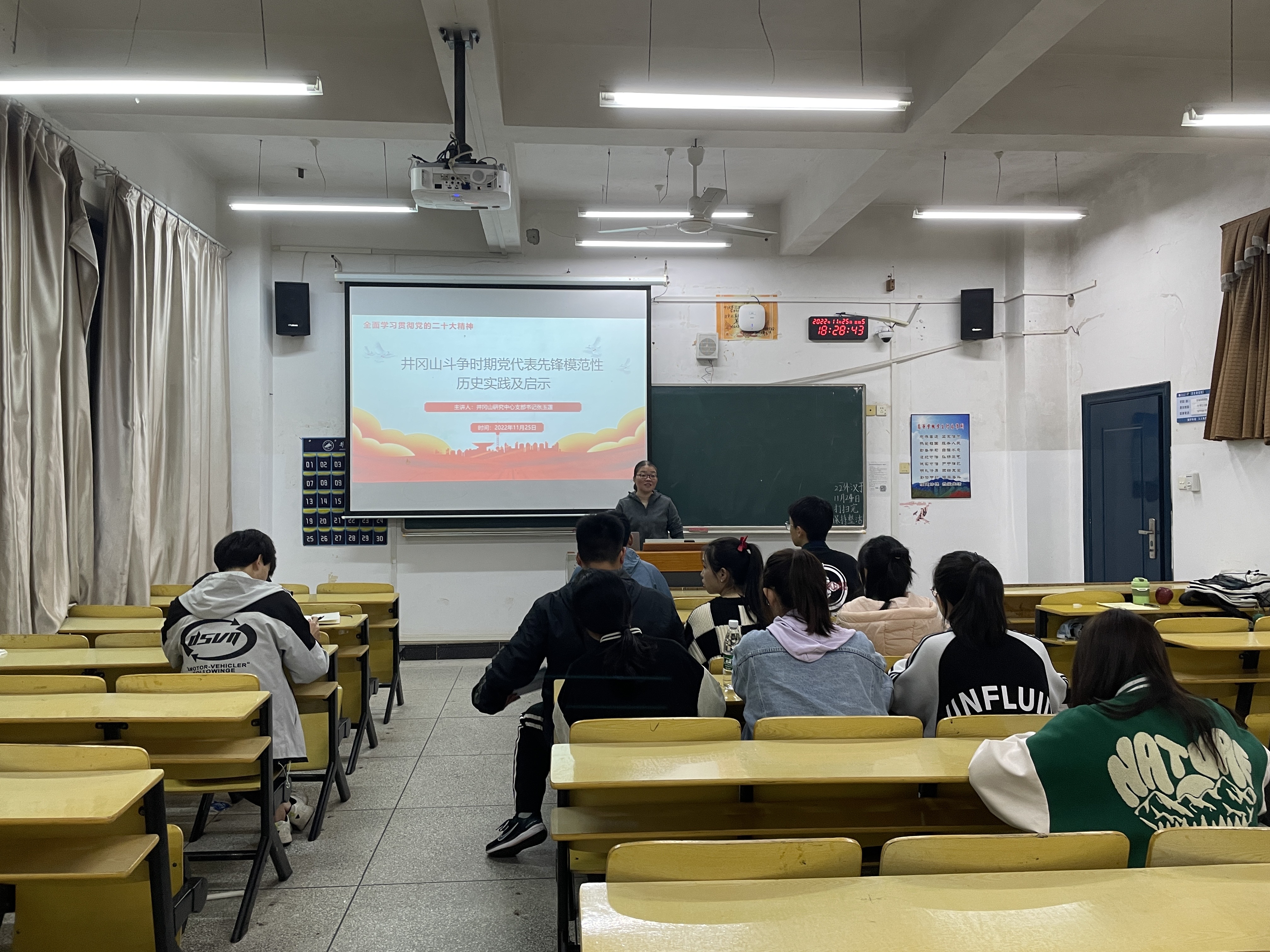 张书记从二十大报告关于开辟马克思主义中国化、时代化新境界的表述与2021年习近平总书记在中国共产党建党百年讲话中相关内容表述的异同入手,引导同学们认识井冈山道路是马克思主义中国化、时代化的经典之作,而当年这条胜利革命道路的开辟与党代表制度的建立与实行有着莫大的关系。