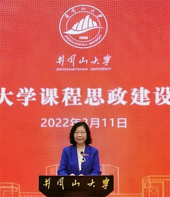 胡春晓在讲话中介绍了学校课程思政建设的主要举措和取得成果等情况。她表示,井冈山大学是一所具有鲜明红色基因的红色高校,承载着以红色基因铸魂育人的光荣使命。多年来,井冈山大学高度重视思想政治工作,充分发挥课程思政的育人功能,坚持以井冈山精神办学育人,深入挖掘利用井冈山及其周边得天独厚的红色、古色、绿色等资源,推进课程思政改革创新,突出传承红色基因,赓续红色血脉,将“红古绿”等资源融合,融入到课程思政铸魂育人全过程,形成了较为完善的实践体系,取得较为丰硕的实践成果。
