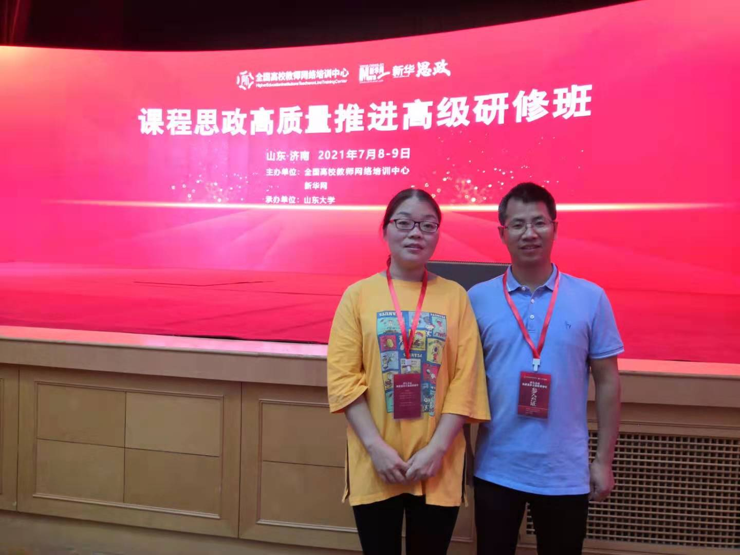 7月8日-9日,由全国高校教师网络培训中心和新华网主办,山东大学承办的课程思政高质量推进高级研修班在济南举行。中心张玉莲副教授、陈岭博士受邀参加研修班。此次研修班是在庆祝中国共产党建党100周年、教育部发布《高等学校课程思政建设指导纲要》一周年之际召开的大规模、高水平课程思政建设盛会,是落实“教育部课程思政建设工作推进会”精神的重要举措,对下一步推进课程思政高质量发展,推广和应用好课程思政示范项目建设成果,推动我国课程思政向高质量转变具有重要意义。