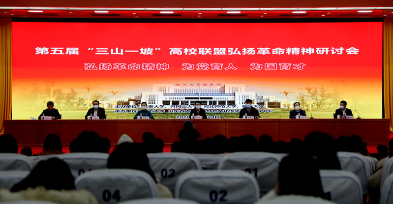 11月24日,为深入学习贯彻习近平总书记关于弘扬沂蒙精神重要讲话和党的十九届五中全会精神,由延安大学、井冈山大学、河北师范大学、临沂大学主办的第五届“三山一坡”高校联盟弘扬革命精神研讨会在临沂大学举行。教育部高等学校社会科学研究中心主任王炳林在线出席会议。临沂市委常委、秘书长范连生,山东省社科联原副主席周忠高,《中共中央党校学报》副主编、中央党校二级教授刘学侠;河北师范大学党委书记戴建兵,井冈山大学党委书记胡春晓,延安大学党委委员、副校长杨伟宏,井冈山大学党委常委、副校长陈小林,井冈山大学原校长、中心主任张泰城;临沂大学党委书记王焕良,党委副书记刘占仁,党委委员、副校长池福安、崔晓红,党委委员、宣传部部长白金山出席会议。中心副主任肖发生、中心兼职研究员张梅龙应邀参加了会议。