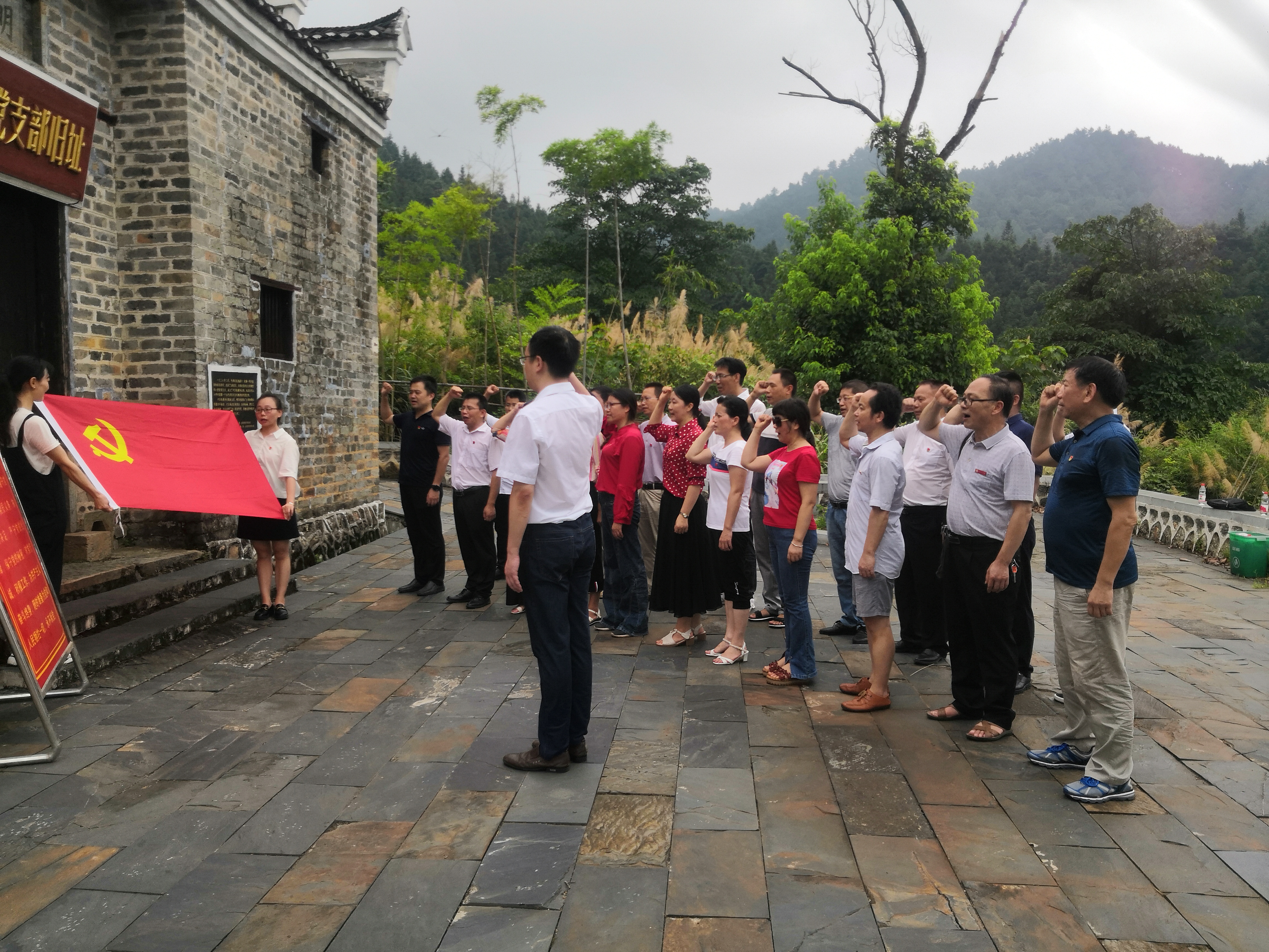 拾阶而上,来到了不远处位于半山腰上的秋溪党支部旧址处。当年,毛泽东同志亲手创建了秋溪党支部,成为加强党的基层组织建设,充分组织发动群众重要举措。面对鲜艳的党旗和秋溪党支部旧址,李泉带领全体党员,举起右手,庄严重温入党誓词。张梅龙带领全体思政课教师,面向国旗,宣誓着为党育人、为国育才的使命担当。