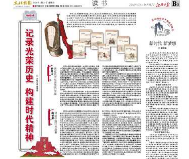1月19日,江西日报以《记录光荣历史 构建时代精神》为题报道了中心主任张泰城教授主编的《井冈山红色文化资源揽萃丛书》,认为该丛书“既有对珍贵文献材料的整理,又有对井冈山斗争亲历者回忆的展示,还有对广泛流传于井冈山及周边地区生动传说的精彩叙写,更有弥足珍贵的实物资料(标语、文物、旧址)的集中展现,是一套融知识性、趣味性、可读性、观赏性的资料丛书”。全文报道如下: