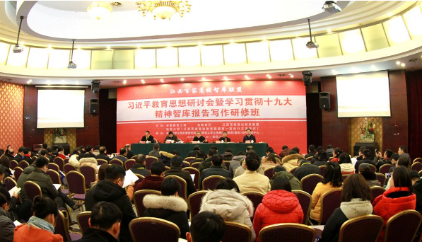 1月30日,由省委教育工委、省教育厅、江西百家高校智库联盟与南昌大学共同主办的习近平教育思想研讨会暨学习贯彻十九大精神智库报告写作研修班在南昌大学举行。省百家高校智库联盟秘书长、井冈山大学原校长张泰城,省百家高校智库联盟第一届执行主席单位代表、南昌大学党委副书记黄恩华,省委教育工委委员、省教育厅副厅长杨慧文出席会议并致辞。会议由江西师范大学党委书记田延光主持。