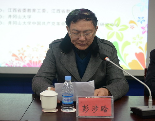 彭涉晗代表学校,对前来参加研讨会的各位领导、各位来宾和同学们表示热烈的欢迎,对大会的召开表示热烈祝贺,对长期以来关心和支持井冈山大学的省委教育工委、省教育厅的领导和各兄弟院校表示衷心的感谢。他在介绍学校基本情况后指出,结合新的时代条件,让井冈山精神放射出新的时代光芒,是习近平总书记在江西视察时的殷切期望。江西弘扬井冈山精神要走在全国前列,是省委战略部署的明确要求。全省高校肩负着立德树人的根本任务,肩负着文化传承与创新的社会功能,肩负着培养中国特色社会主义合格建设者和接班人的神圣职责,坚持把弘扬井冈山精神贯穿于育人全过程,努力在弘扬井冈山精神方面走在前列,是我们义不容辞的使命和担当。此次研讨会召开,是省委教育工委、省教育厅贯彻落实习近平总书记重要讲话精神一个重大举措,也是全省高校的自觉身体力行弘扬井冈山精神的具体行动,对于促进全省高校弘扬井冈山精神走在全省乃至全国前列,加强全省高校的交流与合作、增进感情与友谊,具有非常重要的意义和影响。