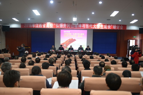 为深入学习贯彻党的十八届六中全会精神和习近平总书记视察江西重要讲话精神,积极探索新形势下井冈山精神进教材进课堂进头脑的有效途径,着力打造我省弘扬井冈山精神与加强高校思想政治工作的特色品牌,大力推进全省高校在弘扬井冈山精神方面走在前列,12月3日,由江西省委教育工委、省教育厅主办,井冈山大学承办,中心协办的2016年全省高校“弘扬井冈山精神与当代大学生成长”研讨会在我校开幕,省委教育工委副书记、省教育厅副厅长喻晓社出席并讲话,校党委书记彭涉晗致开幕辞,省委教育工委宣传部部长、省教育厅社政处处长曾青生主持开幕式,校党委副书记肖长春、副校长陈小林以及全省46所普通本科高校和高职高专分管思政理论课教学的校领导出席,46所高校的马克思主义学院院长、思政部主任、思政理论课骨干教师、思想政治教育专业或中共党史专业的本科学生共200余人参加了会议。井冈山大学原校长、中心主任张泰城教授作为研讨会筹备组副组长、说课比赛评审专家组组长,中心副主任肖发生作为论文评审专家出席了会议。