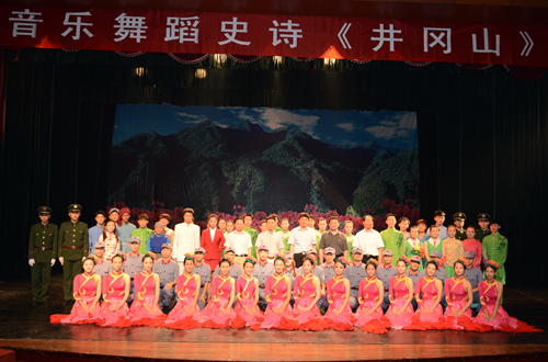 演出结束后,吕玉刚、张泰城、曾建平等走上舞台与大学生合影留念。张泰城发表了热情洋溢的讲话。他说,多年来,教育部一直非常关心和厚爱井冈山大学,给予了学校许多支持和帮助,2010年还邀请节目赴教育部演出。他指出,创编这台节目,一是教学方式的改革,二是人才培养方式的改革,三是为了传播井冈山精神。在新时代传承和弘扬井冈山精神,是井冈山大学的责任和使命。