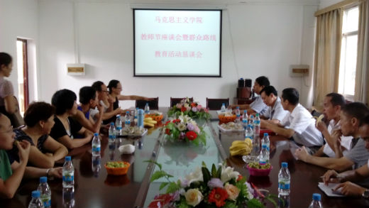 9月10日在第29个教师节到来之际,马克思主义学院会议室,学院领导和部分教师代表欢聚一堂,召开马克思主义学院召开教师节座谈会暨党的群众路线教育实践活动恳谈会,井冈山教师代表参加。会议由杜辉副院长主持。