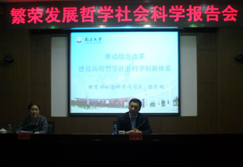 10月19日,教育部社会科学司司长张东刚应邀在南昌大学作《推动综合改革,建设高校哲学社会科学创新体系》专题报告会。江西省委教育工作委员会副书记史蓉蓉,省委教育工委宣传部部长、省教育厅社会科学研究与思想政治工作处处长彭祖雄出席了报告会,井冈山大学校长、井冈山研究中心主任张泰城,副校长曾建平,科研处处长周松,井冈山研究中心副主任肖发生到场聆听了报告会。报告会由省委教育工作委员会副书记史蓉蓉主持。