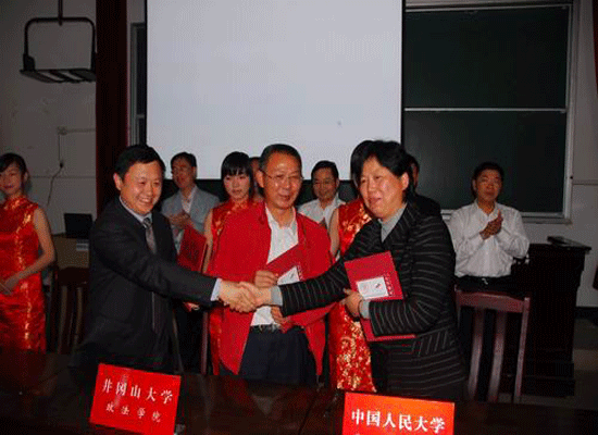 当天,中国人民大学马克思主义学院党委副书记于国红和井冈山研究中心副主任李忠、政法学院院长刘小干共同签署了合作协议。双方商定,中国人民大学马克思主义学院和井冈山研究中心、政法学院共同建设“中共党史”专业本科生专业实习和社会实践基地,中国人民大学马克思主义学院“中国革命史与中国共产党史”本科专业每年安排部分学生到基地进行专业实习。井冈山研究中心、政法学院将结合工作实际和中国人民大学马克思主义学院实习生的专业背景,统一安排专业实习和社会实践活动,提供实习场所和基本工具,并负责派出专业教师进行指导。副校长曾建平出席签约仪式。