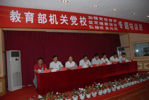 在6月22日的开班仪式上,教育部机关党委常务副书记周福成代表教育部直属机关党委和教育部党组副书记、副部长、直属机关党委书记袁贵仁,向江西省委教育工委、省教育厅和井冈山大学表示诚挚的感谢。江西省委教育工委委员、教育纪工委书记杨寿庆代表江西省委教育工委、省教育厅,欢迎教育部各位领导来井冈山考察学习,并预祝专题培训班取得圆满成功。