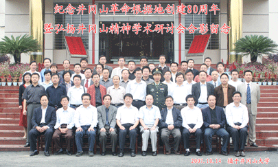 由井冈山大学井冈山精神研究所等单位共同主办的“纪念井冈山革命根据地创建80周年暨弘扬井冈山精神”全国学术研讨会,2007年10月14日在井冈山大学隆重召开。来自北京、上海、湖南、贵州、陕西、河北、重庆、江西等12省(市)和部队院校的50多名专家、学者聚集一堂,以学术研讨的形式隆重纪念井冈山革命根据地创建80周年。井冈山斗争时期革命前辈朱良才上将的儿子、原北京预备役师政委朱新春,原江西省委宣传部副部长刘孚威,省委教育工委宣传部部长、省教育厅社政处处长汪立夏,中共江西省委党史研究室主任沈谦芳博士,中共江西省委讲师团团长李江源教授,中国井冈山干部学院教学科研部副主任匡胜,延安市政协副主席,延安大学科技处处长、延安学研究院院长、陕西省重点研究基地中共党史与延安学研究中心主任、博士生导师郭必选教授,贵阳学院党委常务副书记、博士任钢建教授,河北师大邓小平理论研究中心主任、博士生导师王玉平教授,解放军后勤指挥学院研究部刘高平大校研究员,湘潭大学毛泽东思想研究中心、系主任熊辉教授,江西省社会科学院首席研究员、中国井冈山干部学院特聘教授余伯流等领导、专家、学者在大会上发了言。党委书记万继抗致欢迎词,校长张泰城介绍学校基本情况,副校长罗学渭主持开幕式。这次学术研讨会共收到学术论文70余篇。