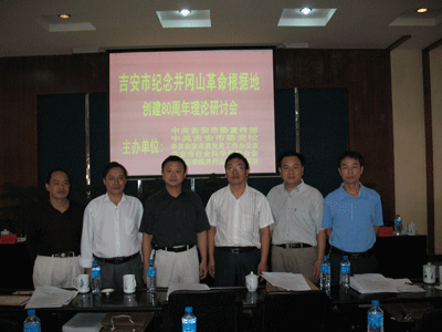 为了深入研究井冈山革命根据地创建的历史意义和时代价值,进一步弘扬井冈山精神,由井冈山精神研究所与吉安市委宣传部、市委党史办、市委党校、市社联等五家单位联合主办的“吉安市纪念井冈山革命根据地创建80周年理论研讨会”于2007年9月12日在吉安市委党校隆重举行,来自全市理论宣传、党史研究、党校、社联等系统的100余人参加了这次气氛热烈的研讨会。井冈山精神研究所作为这次研讨会的主办单位之一,在研讨会的筹备阶段做了大量工作。提交的七篇论文全部获奖,受到与会者的青睐。其中张颢博士提交的论文《论井冈山精神的多重价值及其当代意义》荣获本次研讨会唯一的一等奖,陈钢教授的《井冈山斗争时期红四军党的一至五次代表大会考》获得二等奖,黄惠运教授的《党在井冈山时期的执政经验及其启示》获得三等奖。副所长李忠教授、专兼职研究员陈钢教授、刘义程博士、肖云岭副教授、张颢博士、罗建清副教授等出席了研讨会。张颢博士、陈钢教授还在研讨会上作了重点发言。研讨会取得了圆满的成功,吉安电视台、井冈山报、吉安晚报等多家媒体进行了报道。