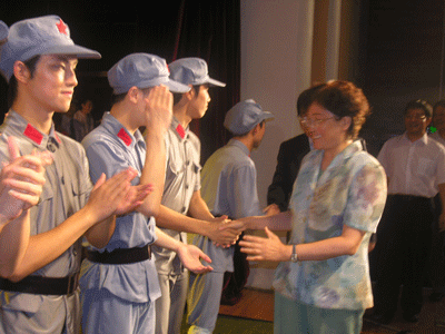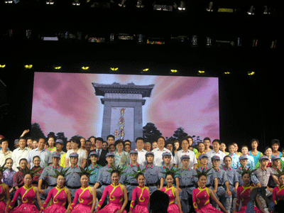 演出结束时,教育部副部长吴启迪等领导走上舞台,接见了全体演员,感谢大家带来了精彩的节目,让全体观众受到了一次生动、深刻的革命传统教育。各位领导还与演员合影留念。上海井冈商会向演员献花,对演出成功表示祝贺。