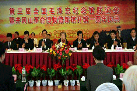 2008年10月27-28日,为纪念毛泽东同志诞辰115周年,緬怀他老人家的丰功伟绩,第三届全国毛泽东纪念馆联諠会学术研讨会在革命圣地井冈山隆重召开。我所李忠副所长、特聘教授陈钢应邀出席,参加这次大会的还有毛泽东的亲属刘思齐;曾在毛主席身边的工作人员吴连登、陈长江、钱嗣杰、周福明、王明富、田云玉、曾文、张剑明等有关部门领导;中央党史研究室副主任龙新民、中央文献研究室原毛泽东生平研究组组长高风、中央党史研究室王新生,中国民族书画研究院院长张生礼、江西党史办主任沈谦芳、井冈山管理局副局长陈敏、井冈山革命博物馆馆长肖邮华等也参与大会。大会期间,曾在毛主席身边工作过的周福明、钱嗣杰、吴连登三位同志深情回忆了毛主席全心全意为人民服务的光辉事迹和不朽思想,使与会者深受教育;一些专家学者还就毛泽东在闽西革命斗争、井冈山精神、井冈山斗争史等问题进行了深入探讨。最后,中央文献研究室原毛泽东生平研究组组长高风做总结发言,指出这次研讨虽然时间不长,但内容丰富,像这样的活动,以后应该多搞些,同时,还可通过网络等多种形式,及时进行交流。